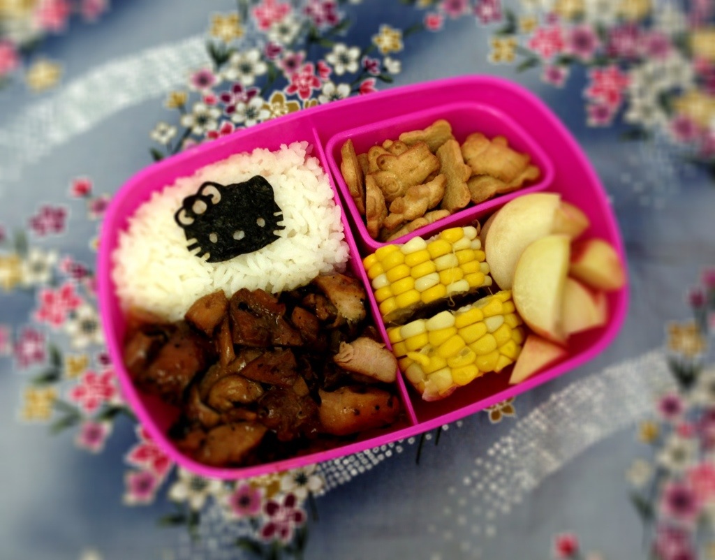 11 JunJust a typical leftover bento. I didn’t have too much time to make it cute or to be creative but I managed a cute face. 🙂 I originally wanted to put the cheese cutout in the heart of the apple, but it slipped right through. So, on the top it went. 🙂